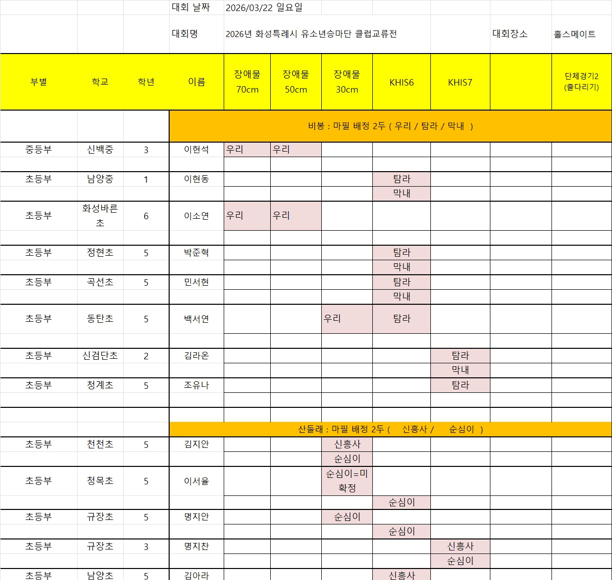[2026년 화성특례시 유소년승마단 클럽교류전 마필 배정 2026/02/26]