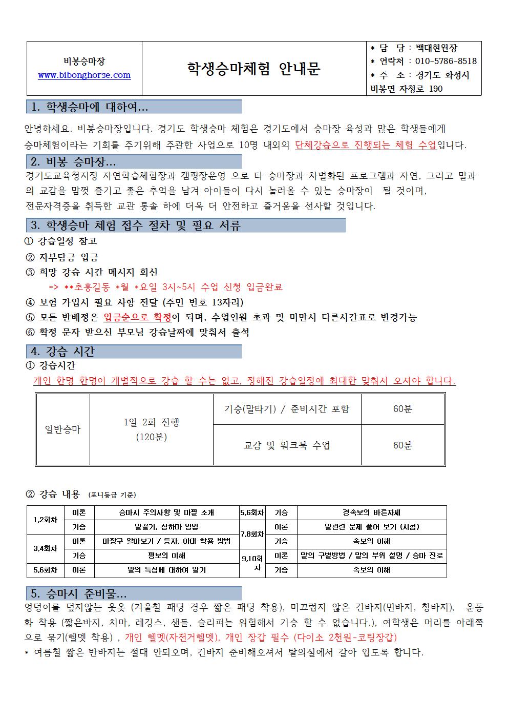 학생승마안내문