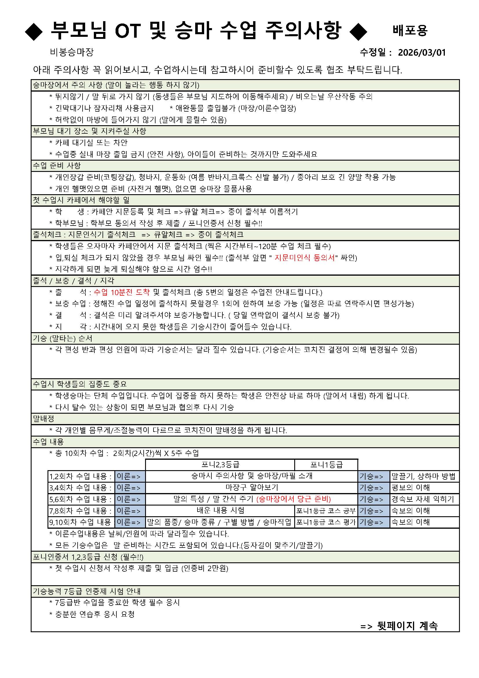 회차별수업내용(학생승마)